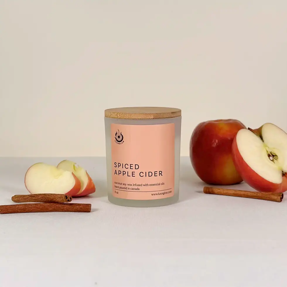 The SPICED APPLE CIDER scented coconut soy candle brings the autumn spirit to life! Imagine stepping into an apple orchard, where the air is filled with the crispness of fresh apples while sipping on warm apple cider. As you dive deeper into the fragrance, notes of cinnamon, clove, nutmeg, and vanilla swirl around, adding a touch of delight.